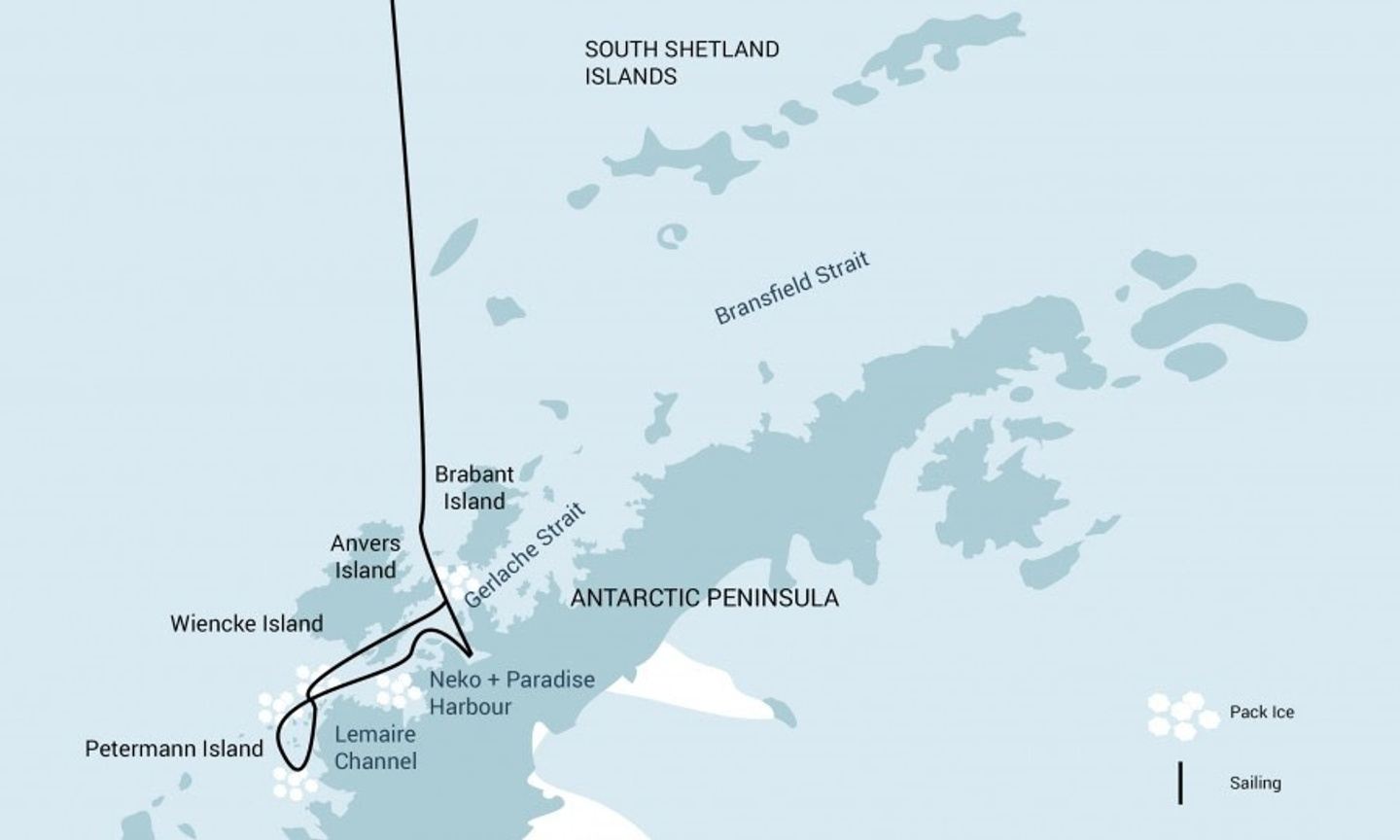 Neumayer Channel â The vessel may position itself here, launching its multiple basecamp activities from the protected waters around Wiencke Island. You can enjoy the splendors of this alpine environment at sea with Zodiac and kayaking trips, or if youâre in the mood for a walk, there are possible snowshoe hikes and soft-climb mountaineering options farther inland. Naturally, favorable weather conditions determine the possible activities.
