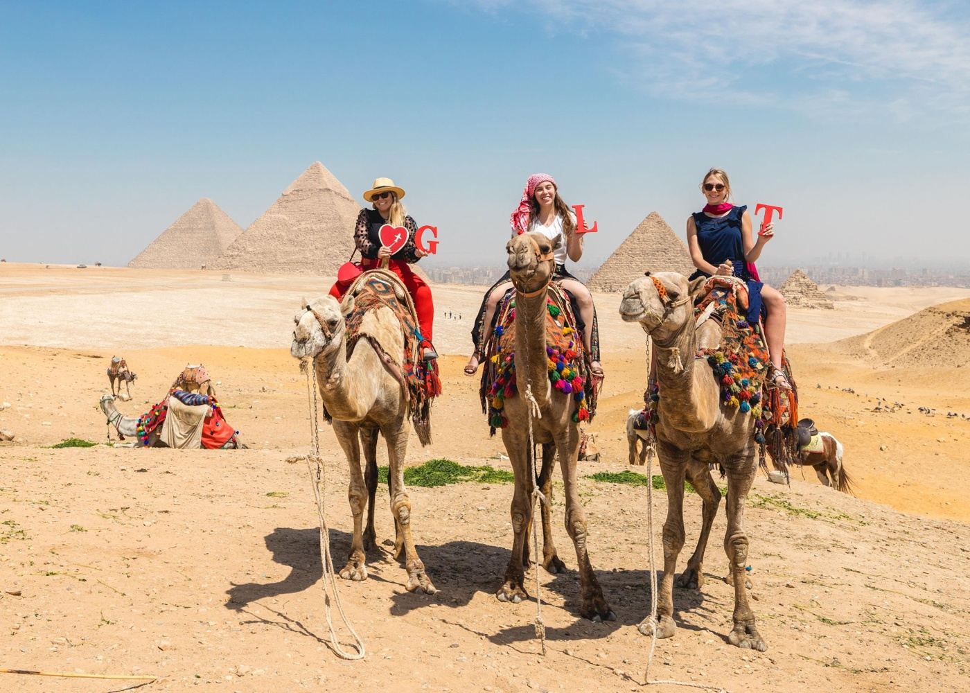 We'll take a brief Camel Ride in front of the Pyramids with individual and group portraits! After, we will visit the Great Sphinx.